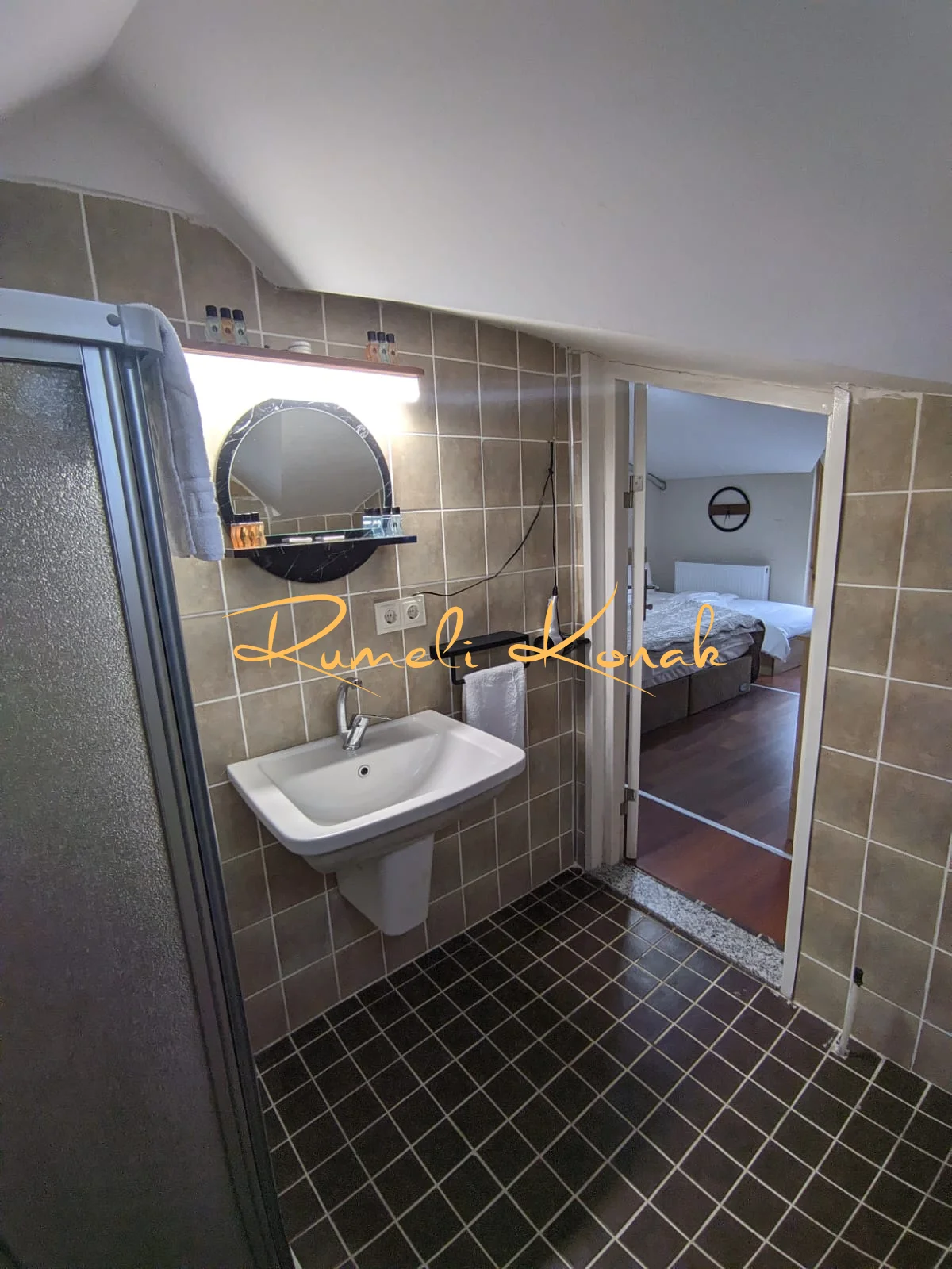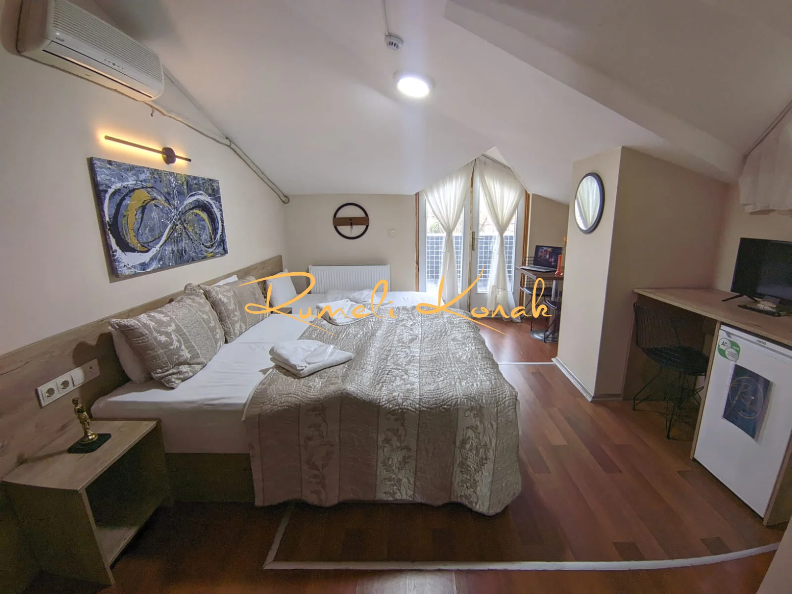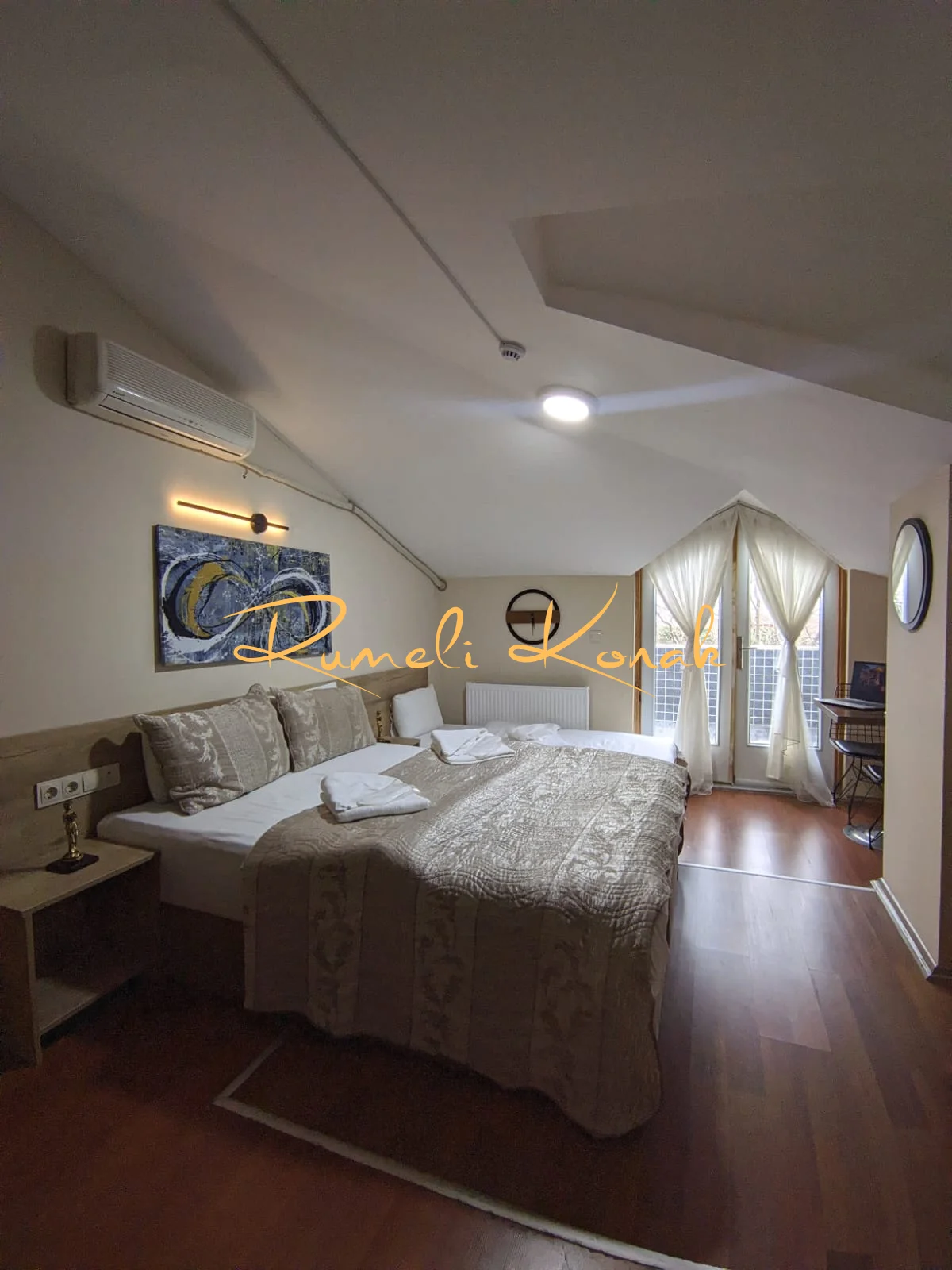 Bu odamız işletmemizin çatı katında müstakil olup balkonlu ve deniz manzaralıdır.standart olarak 1 çift kişilik ve 1 tek kişilik yatak kapasitesine sahip olup arzu edildiğinde rezervasyon talebine göre ilave tek kişilik yatak ya da bebek beşiği konulabilmektedir.